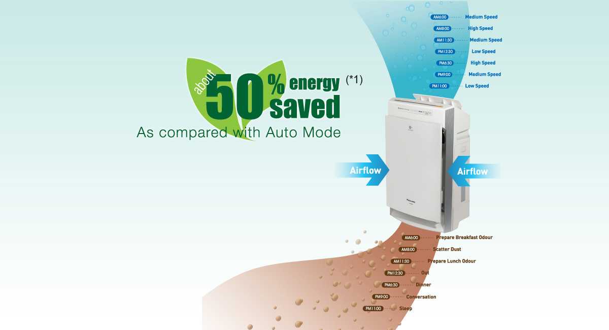 Eco operation mode runs only when necessary - ECONAVI is an intelligent technology that can monitor your daily activities and memorize the timeline of the pollution level. It then controls of the product before pollution spreads throughout the house. With ECONAVI, up to 40%* of energy wastage is reduced.