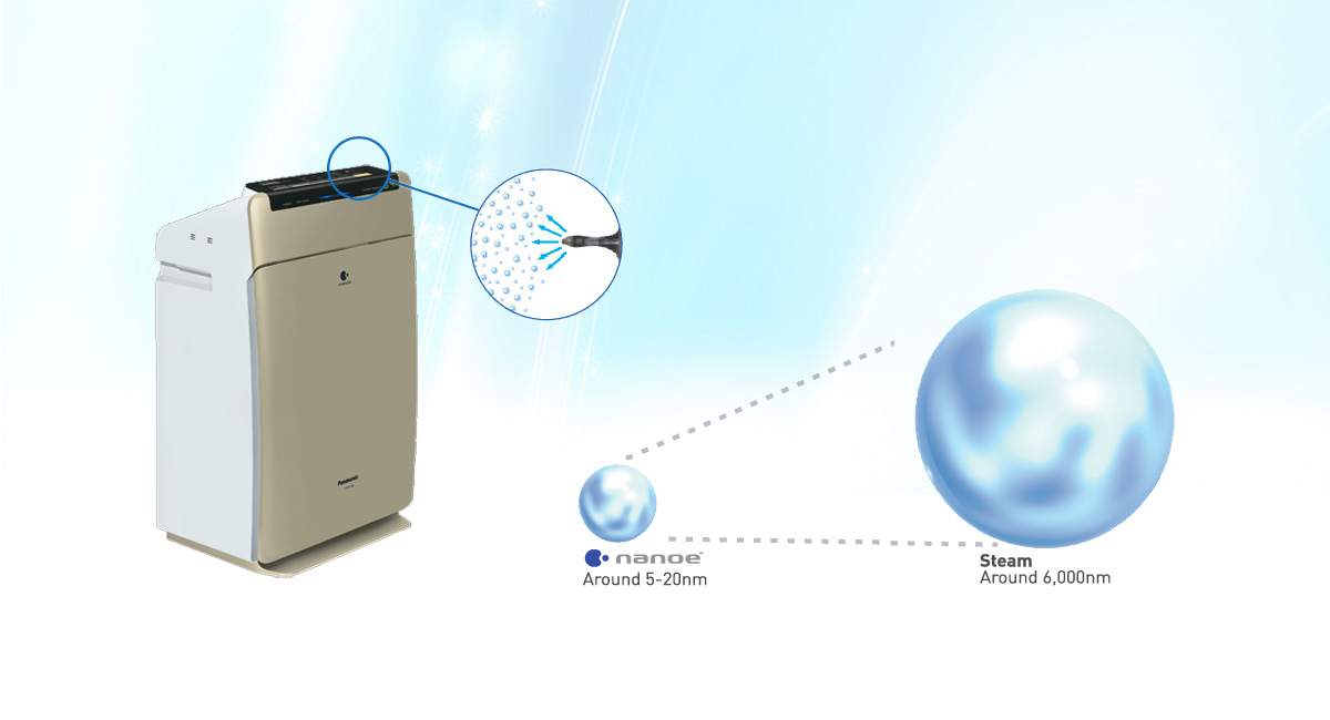 One-billionth of the volume size of a steam particle - nanoe™ is much smaller than steam that can deeply penetrate into cloth fabrics to restrain dirt.