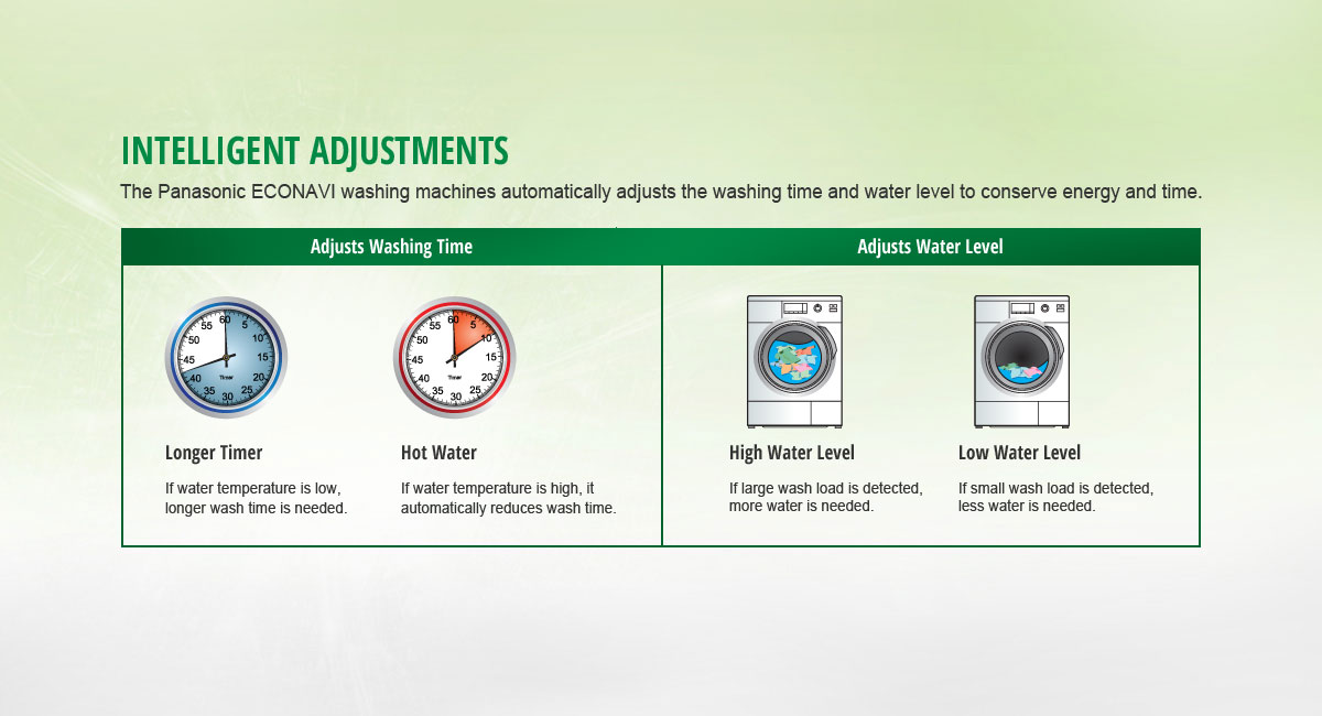 Panasonic ECONAVI washing machines come with intelligent sensors that detect Water Temperature and Washing Load.