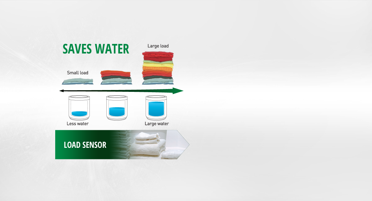 The ECONAVI Load Sensor detects the amount of clothing and sets the water level.