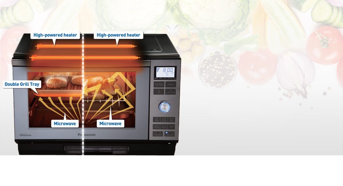 A Remarkably Compact Body For Delicious Oven Cooking. It features with 1,200W Top Heater & 1,200W Bottom Heater & Microwave 1,000W Power Source and Innovative Inverter Technology.