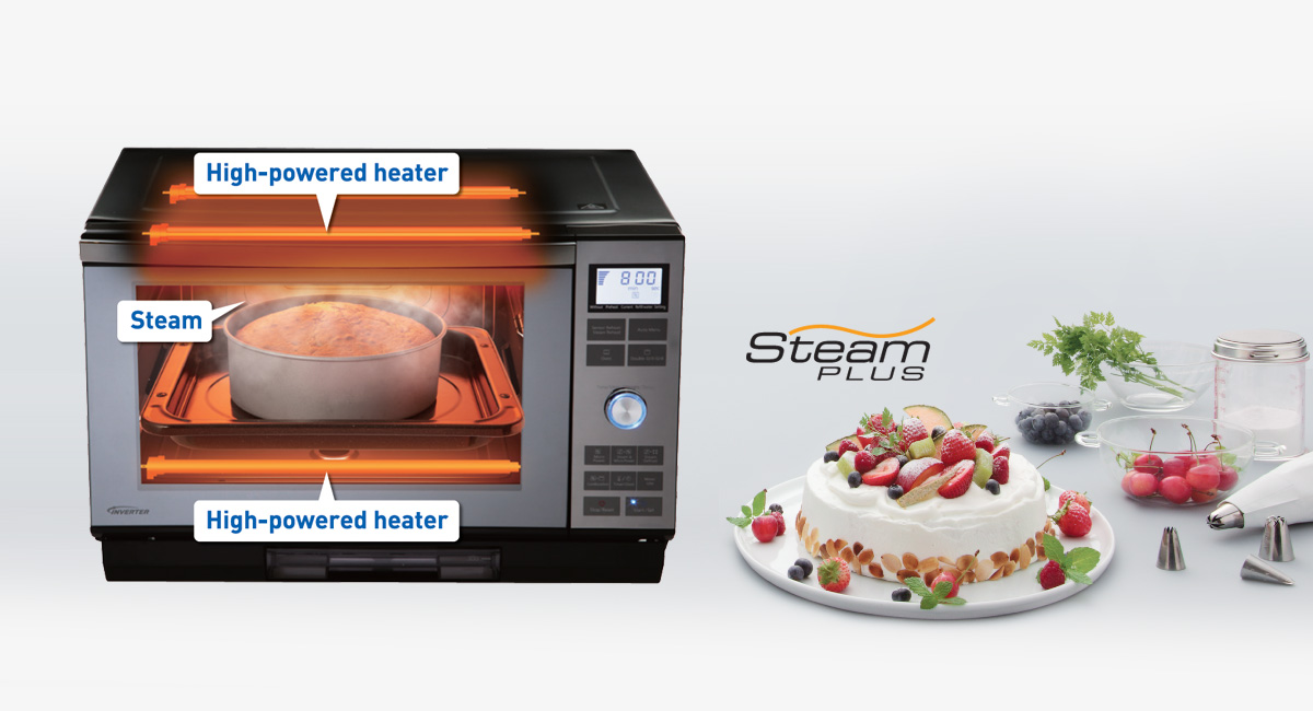 Consistent steam and stable microwaves quickly warm up food without drying it out. Steam cooking with the Auto Menu precisely controls the steam timing to ensure the tastiest possible results. By adding steam, you get more delicious cakes and cookies, lighter, fluffier cream puffs and tasty meat dishes.
