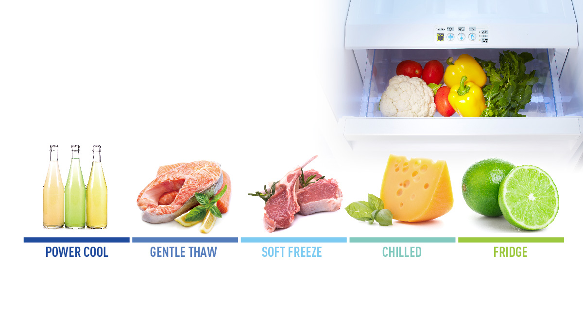 Each setting provides the optimum storage conditions for different foods. The Fridge and Convertible Room can be independently controlled.