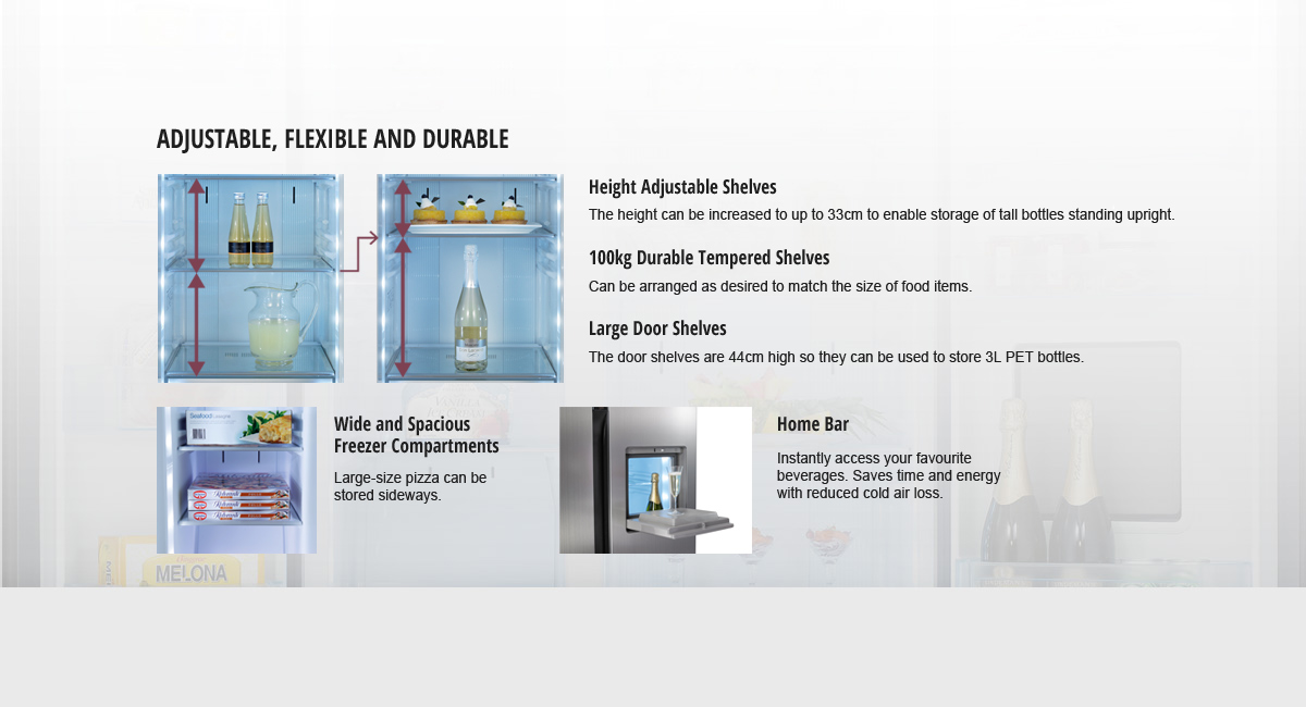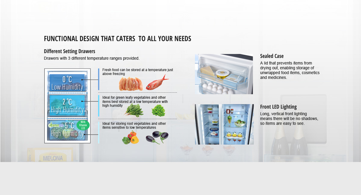 The fridge automatically switches to ECONAVI (energy-saving) mode depending on the lifestyle of the user.