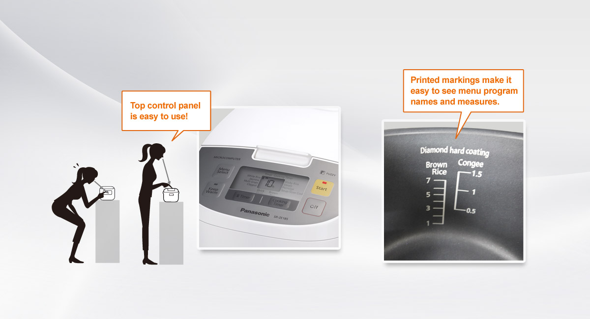 The large LCD screen on the top panel provides easy-to-see text and simple operation. And the Water Level Lines have clear, easy-to-read menu names and level markings.
