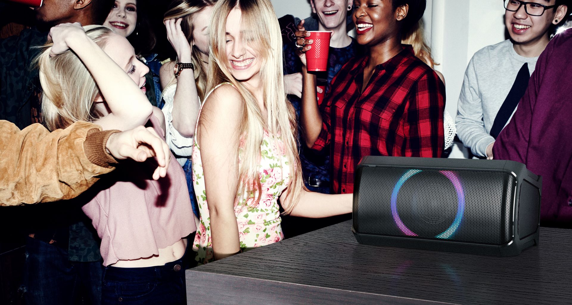 SC-TMAX5 setter festen i gang med kraftig og klar lyd, takket være en 16 cm basshøyttaler med Dual Drive. Støtter «Qi» for trådløs lading og ekstern powerbank**, slik at du kan bære den med deg og bruke den hvor som helst. Plasser den enten vertikalt eller horisontalt, og bruk den på forskjellige steder. Kos deg alene eller sammen med alle vennene dine!