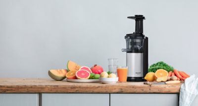 Den nye langsomtarbeidende jusmaskinen fra Panasonic er en fryd å bruke – kompakt, stille og enkel å rengjøre. Unn deg selv og familien sunn juice og frosne desserter.