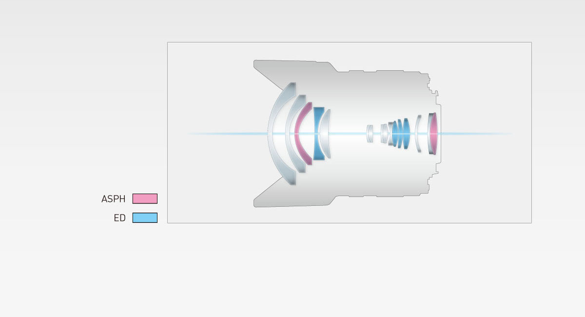 • 2 aspherical lenses and 4 ED lenses for superb optical performance
