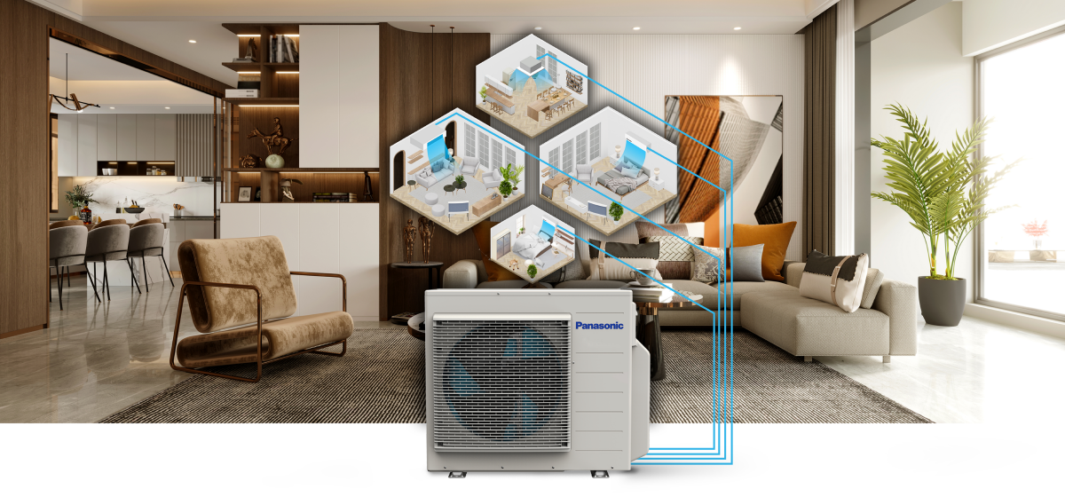 With built-in Wi-Fi and Panasonic Comfort Cloud App, connect and control multi zone air conditioning units from anywhere, at home or away via one mobile device.