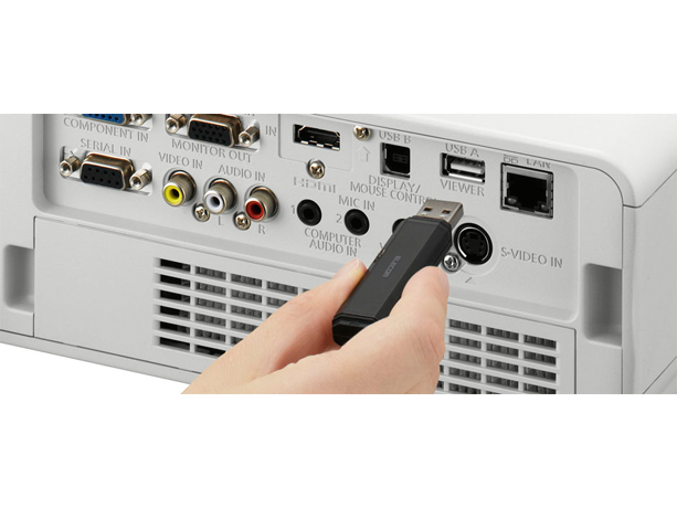 The PT-VX505NEA provides a host of convenient wireless functions, including Live mode and Multi-Live mode. In Live mode, the image projected is identical to the image seen on the PC screen. In Multi-Live mode, you can wirelessly connect with up to 16 PCs at the same time.