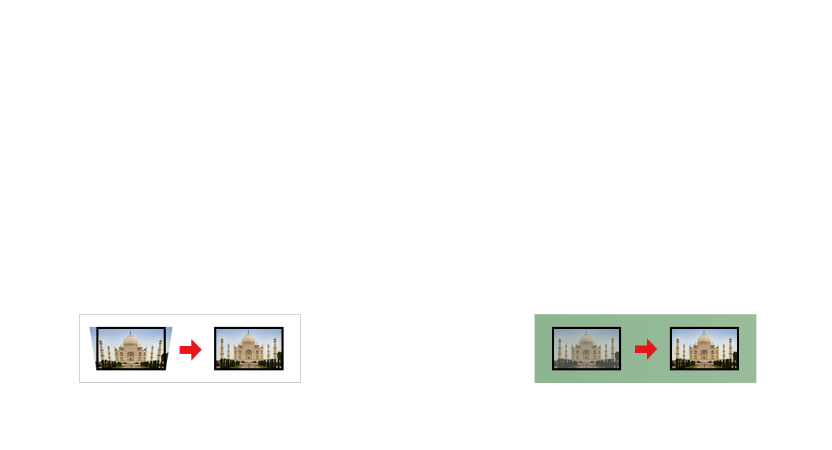 With Real-Time Keystone Correction, the Projector automatically senses if you adjust its angle (in the vertical direction) during operation and instantly makes whatever keystone correction is necessary for optimal viewing.