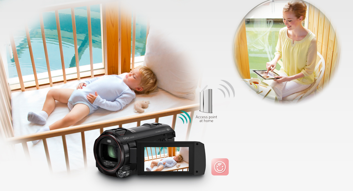 Baby Monitor | Panasonic Camcorder W850/V750/V550/V250 Series Using Wi-Fi, you can monitor the baby in separate room with a smartphone or tablet.