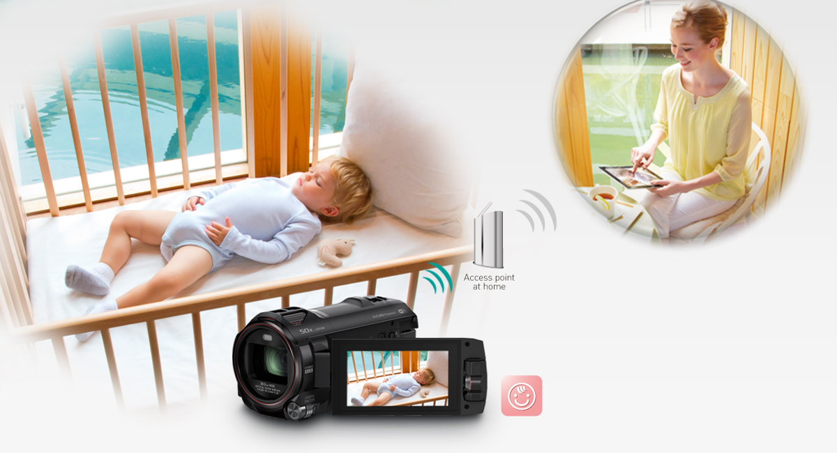 Baby Monitor | Panasonic Camcorder W850/V750/V550/V250 Series Using Wi-Fi, you can monitor the baby in separate room with a smartphone or tablet.