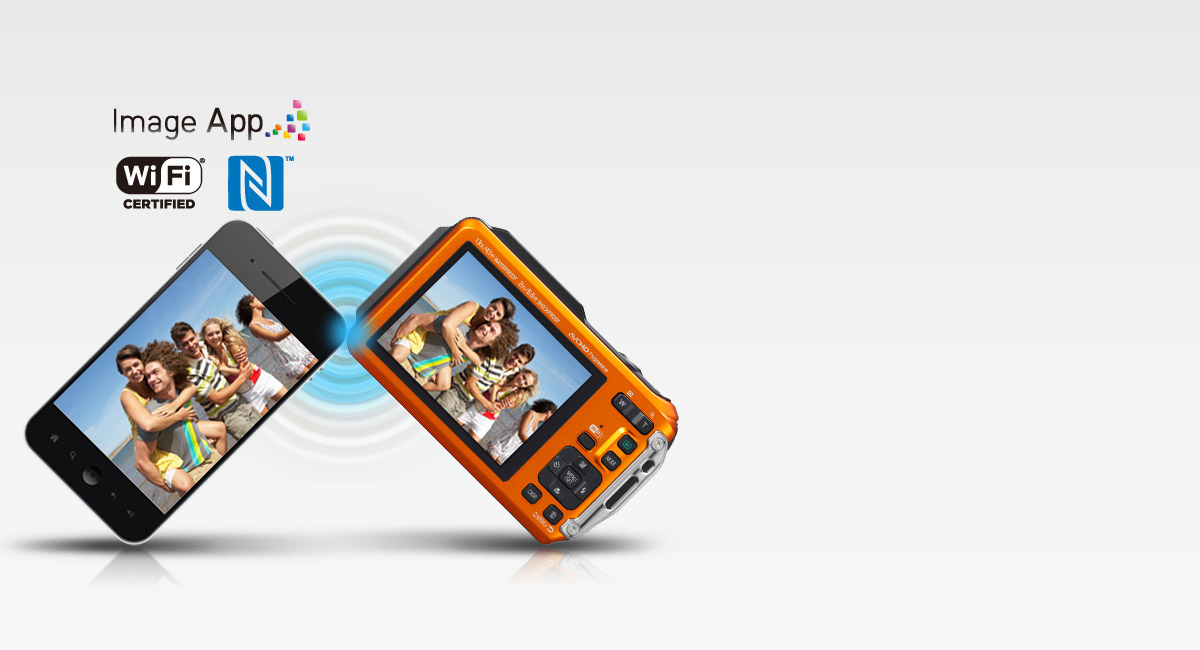 NFC makes Wi-Fi® connection easier. By just touching an NFC compatible smartphone or tablet to the camera, you can change it to a remote controller or transfer data to it.