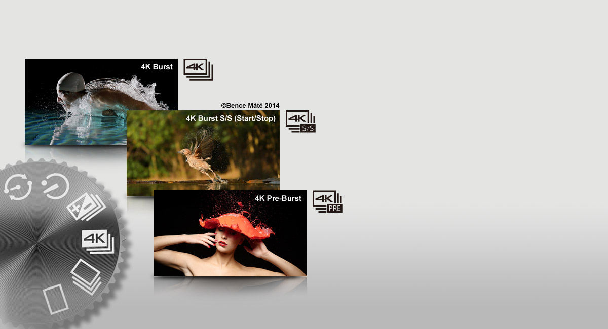 The 4K Photo function can be used in three different modes, all of them allowing you to capture that perfect moment at a high burst rate of 30 frames per second: