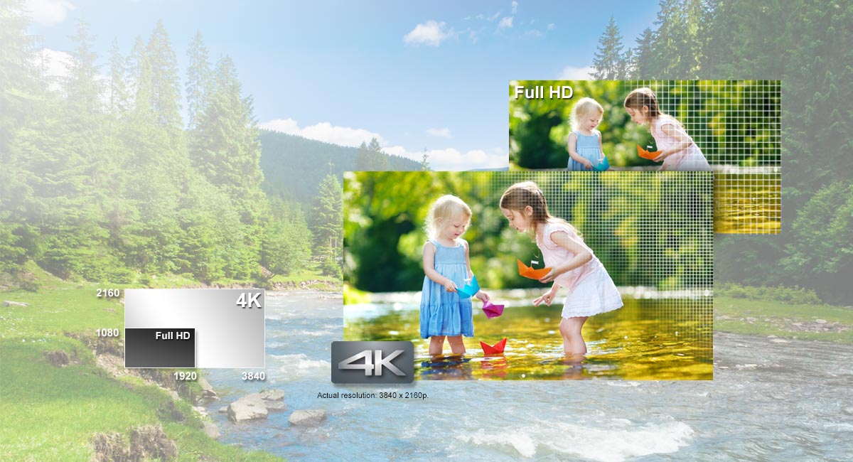 Whether you are watching movies or editing videos, 4K delivers a far more intense viewing experience than you have seen before. Its native resolution of 3,840 x 2,160 pixels is four times larger than Full HD, resulting in a much higher level of detail. Even if you export your footage filmed in 4K to a Full HD TV, the video files will have even better definition and crisper details than those filmed in Full HD.