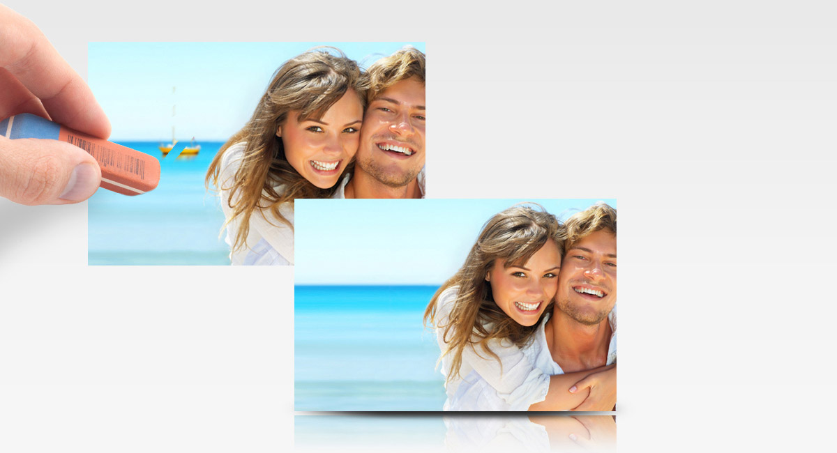 Clear Retouch makes it possible to erase unwanted objects or figures in an image by just tracing over them on monitor with a fingertip. They naturally disappear without destroying the image.
