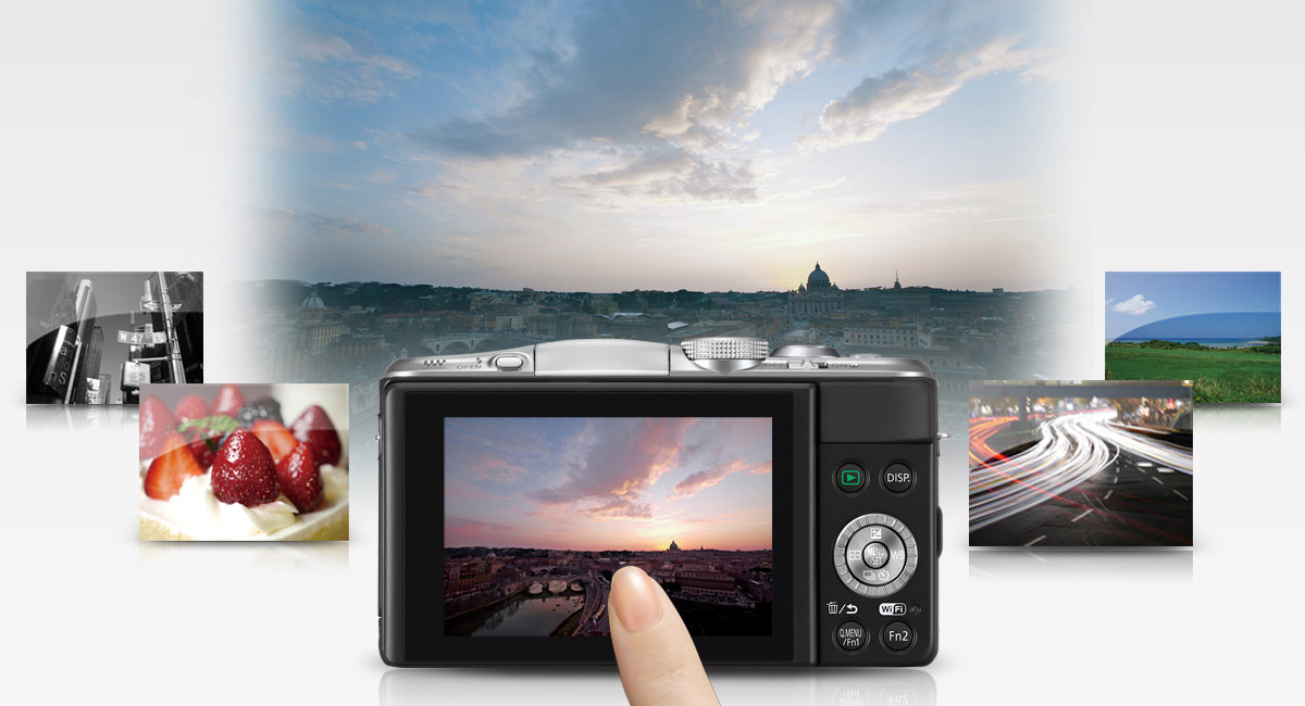 The LUMIX DMC-GF6 comes with a 180-degree-tiltable LCD and enables unlimited artistic expression with a variety of creative filters.