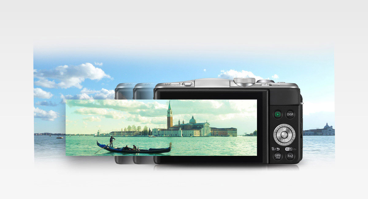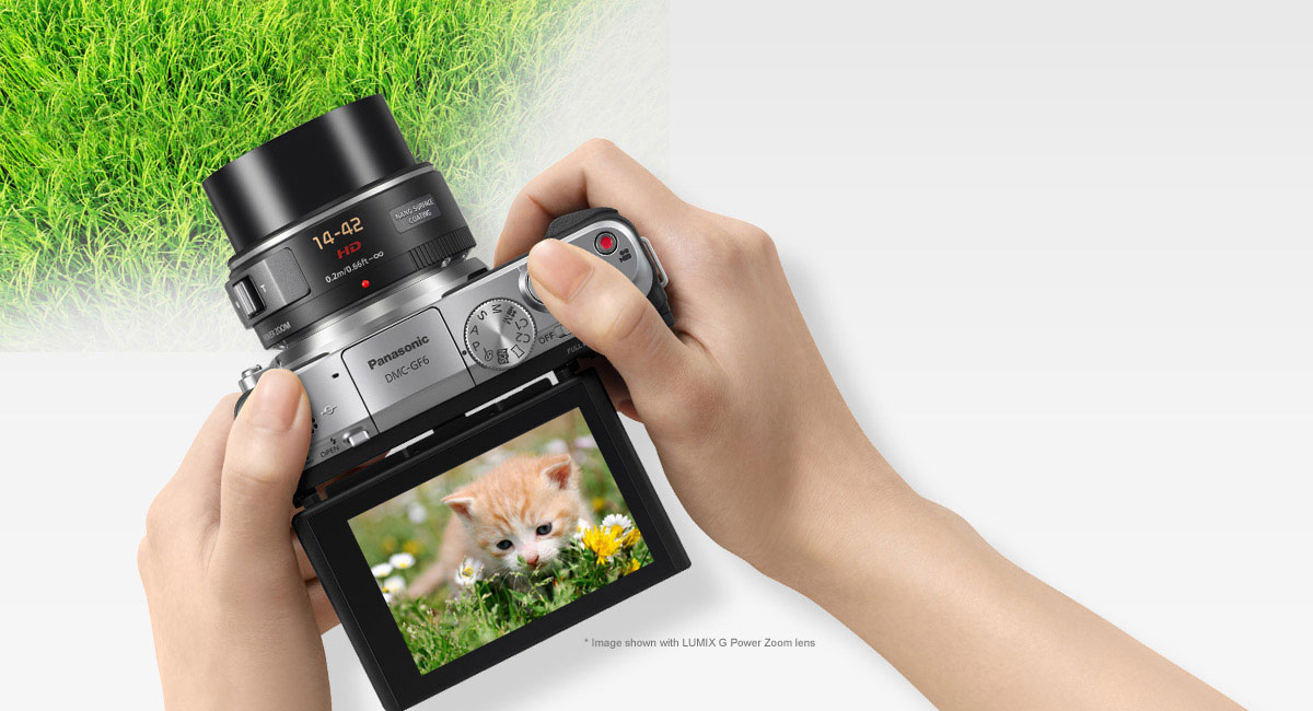 The LUMIX DMC-GF6 comes with a 180-degree-tiltable LCD and enables unlimited artistic expression with a variety of creative filters.