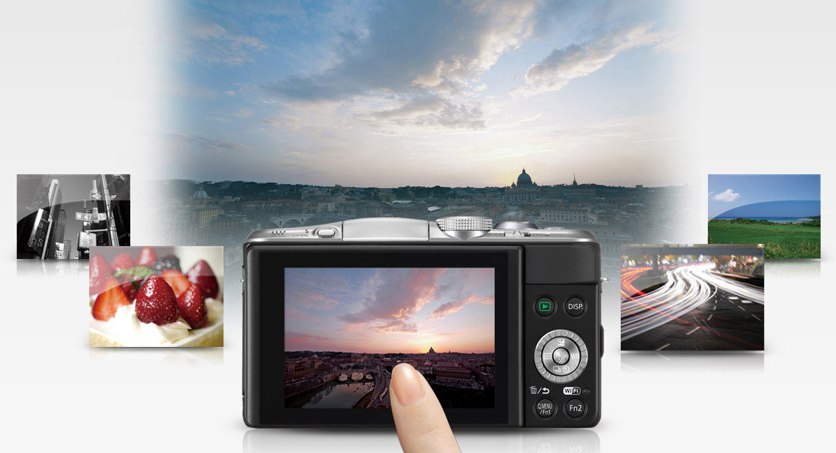 With the Full-area Touch AF, it is possible to set focus on any point in the field of view which realizes quick and intuitive focusing operation with free frame composition. In addition, the newly adopted Touch AE (Auto Exposure) function allows setting focus and exposure at a single touch on the subject displayed on the monitor.