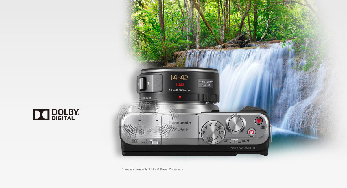 The DMC-GF6 records 1920 x 1080 full HD videos with full-time AF and high quality stereo sound in the AVCHD format which excels in both compression efficiency and compatibility with AV equipment for playback. With a dedicated video record button on the top, you can instantly start recording videos while shooting photos without having to make any extra setting adjustments.