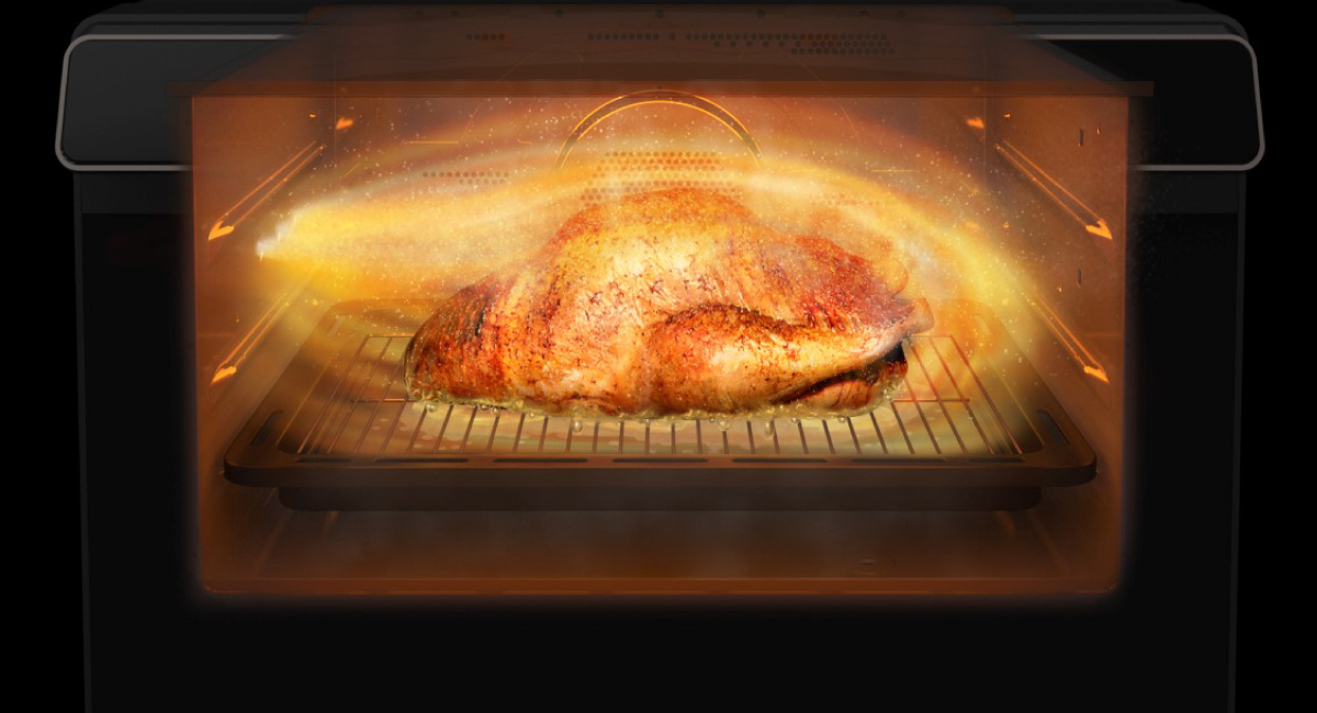 Superheated steam is nano-sized particles with over 100ºC temperature, which allows deeper penetration and results in faster cooking time.