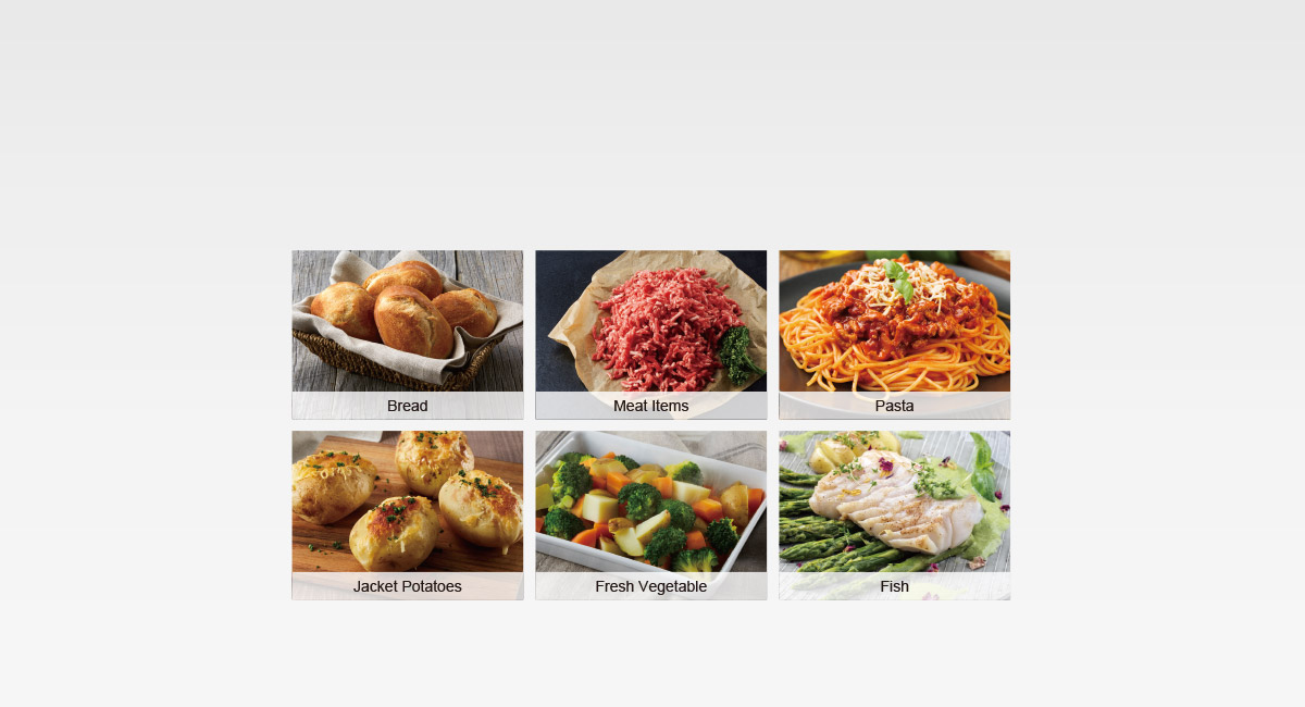 Bread, Meat Items, Meat Joints - Auto Reheat: Curry, Chinese, Pasta - Auto Cook: Jacket Potatoes, Fresh Vegetables, Fish