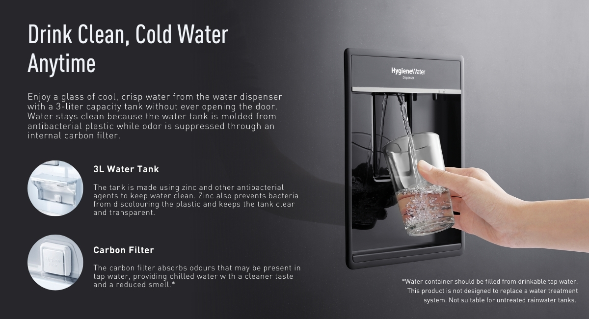 Premium 407L Hygiene Water Dispensing Bottom Freezer Refrigerator
