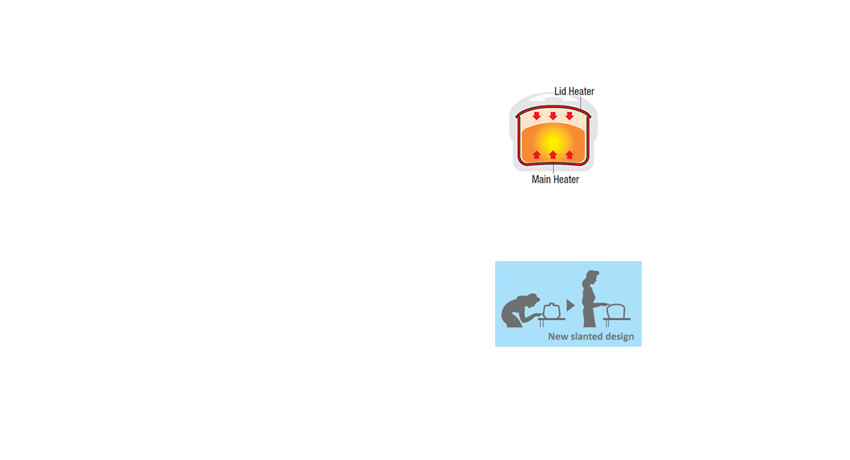 Built for comfort and with you in mind, the SR-DE183WST features a new slanted design, which means you won't have to bend down as much as you would with other conventional Multi Cookers.