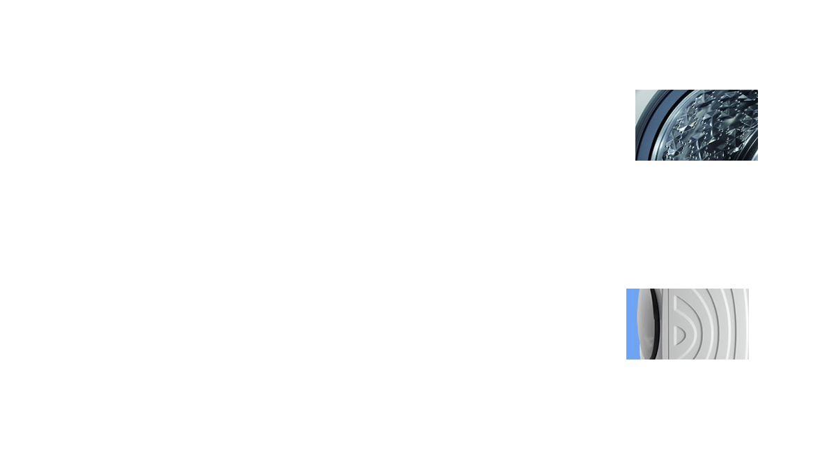 The newly designed Panasonic 'Sazanami Drum' features a new interior with dimple-shaped water spouts, ideal for thoroughly removing dirt while being gentle to clothes. The rounded-edged dimples not only allow for fewer holes and less bumps than a conventional drum, but they also prevent clothes from getting caught. What's more, this unique new Sazanami surface shape also provides a high spin-drying performance, further enhancing the machine's efficiency.