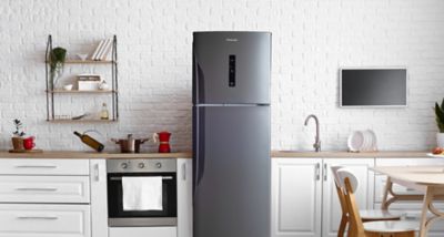 Refrigeradora top freezer, con más del 45% de ahorro energético, SmartSense, libre de bacterias con Antibacteria Ag System, panel electrónico con control de temperatura del freezer.