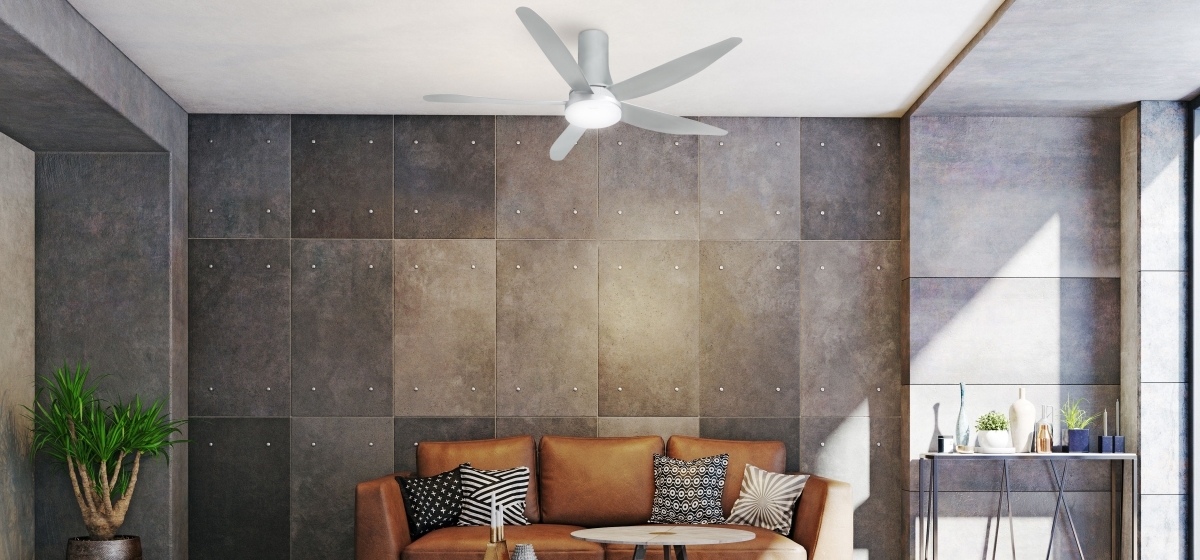 60 inch 5-blade DC motor ceiling fan. Featuring a space-efficient, built-in LED with a selection of 4 light patterns. Combining innovation with contemporary design.