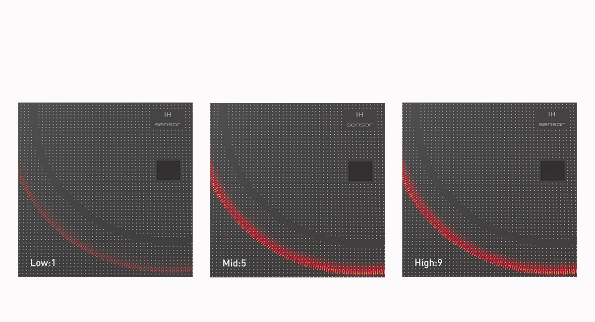 For quick and precise temperature cooking, the IR sensor detects pan-bottom temperature directly.