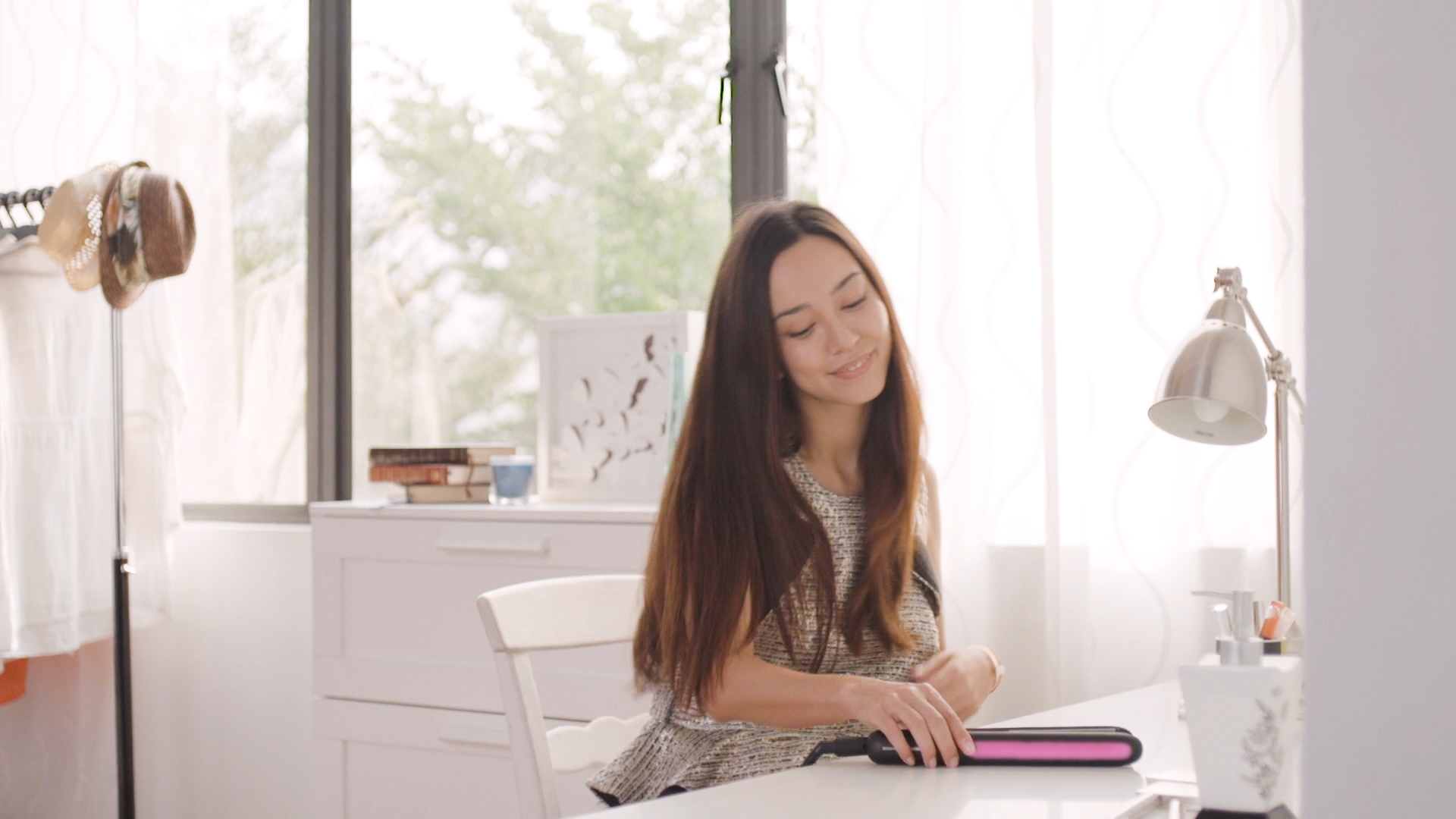 Heat is distributed uniformly over the plate, from edge to edge, so your hair is straightened more evenly.Styling is 30% faster*1 than with conventional models. Styles last 25% longer*2 .