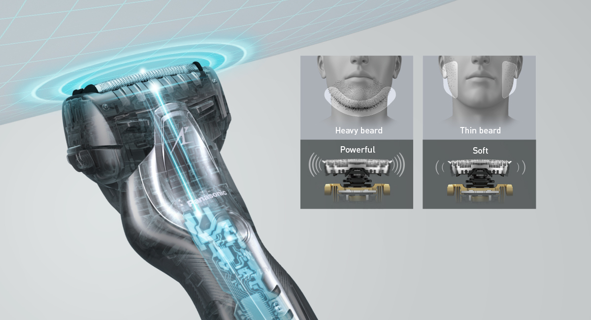 The sensor determines differences in beard density at different locations, and power is controlled to provide powerful cutting where your beard is heavy and soft cutting where it is thin. This reduces the burden on your skin for optimum shaving results.