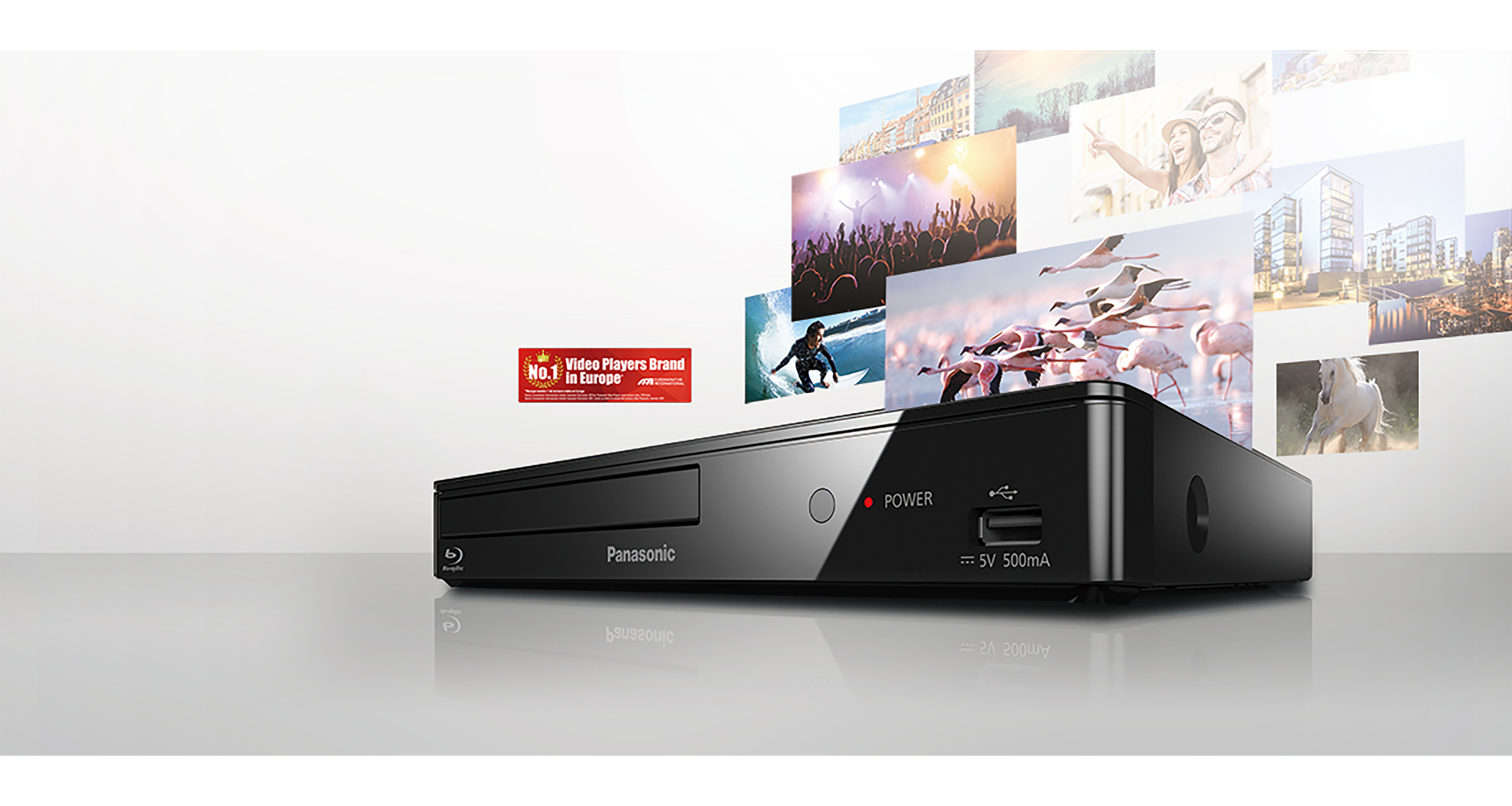Kompaktowy odtwarzacz Blu-ray BD84 z funkcjami sieci inteligentnej może odtwarzać filmy dystrybuowane w Internecie w serwisach YouTube, NETFLIX i innych. Umożliwia także odtwarzanie zdjęć i filmów z zewnętrznego dysku twardego.