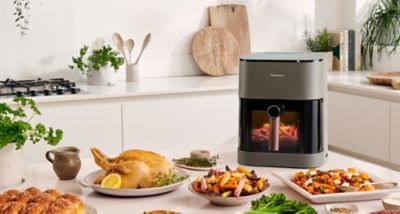 Savurați alimentele pe care le iubiți - mai sănătos, folosind mai puțin sau deloc ulei. Nu aveți nevoie decât de o friteuză cu aer cald Panasonic - astfel încât să vă fie mai ușor să preparați mâncăruri mai sănătoase care să vă hrănească inclusiv starea de bine interioară. Fereastra de vizualizare, debitul de aer la 360° și tehnologiile Gentle Steam fac diferența. Aveți rezultate crocante și suculente la mâncarea dvs. preferată și reconfortantă - rapid și ușor.