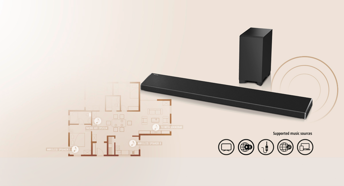 ALL70T är ett mångsidigt och kraftfullt ljudsystem som både skapar ett fantastiskt TV-ljud och även fungerar som högtalare för att streama dina digitala musikfiler och online-källor.