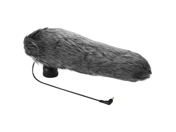 Den externa mikrofonen DMW-MS2 med vindskydd tar ström från kameran och spelar in ljud i mycket hög kvalitet.