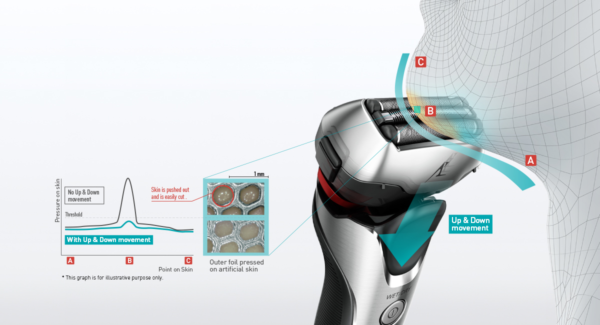 Huden mellan halsen och undersidan av käken är svårast att raka. Om skärhuvudet inte har kontakt med huden riskerar du att missa spretig skäggväxt, men om du trycker för hårt blir huden irriterad. Panasonics unika rakhuvud Multi-Flex med 3D-teknik gör att du kommer nära inpå huden utan att behöva trycka.