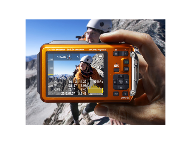 Den nya GPS-funktionen stöder GLONASS (Global Navigation Satellite System) vilken ger ännu högre precision än tidigare. Här visas till exempel land, region och stad tillsammans med speciell information knuten till platsen. Under resans gång geotaggas och sorteras bilder och filmer automatiskt och loggningsfunktionen gör att kameran sedan kan visa färdrutt och avstånd med hjälp av en gratis Google Earth app. Kompass, höjdmätare och barometer är andra praktiska funktioner som kan vara användbara när kameran följer med ut i vildmarken.