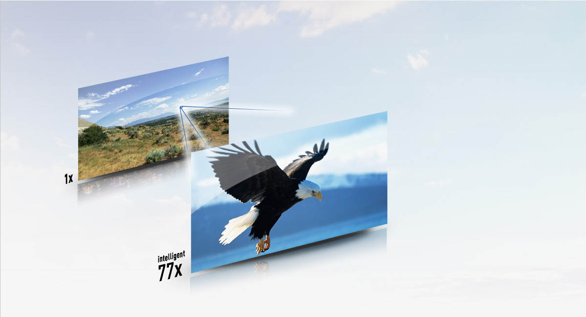 HC-V160 är utrustad med hela 77x intelligent zoom trots det kompakta formatet. Den kraftfulla zoomoptiken kan ta dig riktigt nära inpå avlägsna motiv, så de fyller hela bildytan.