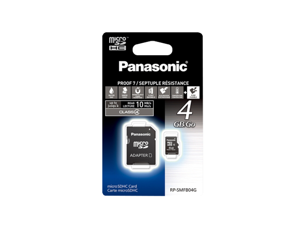 RP-SMFB 4 GB microSDHC-korten är också utrustade med en "Proof 6"-funktion (vatten-, stöt-, magnet-, statisk, röntgen-, temperatursäker) för att klara tuffare förhållanden. Panasonics microSD-kort är säkra därför att de har en inbyggd säkring. Det motverkar överhettning eller antändning av kortet.