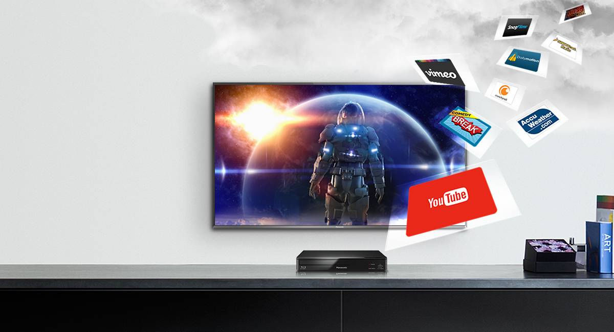 Panasonic Blu-rayspelare går att ansluta till internet, vilket ger dig direkt tillgång till ett stort urval av online-källor som video- och musikstreamingtjänster, spel och andra typer av underhållnings- och informationsappar.