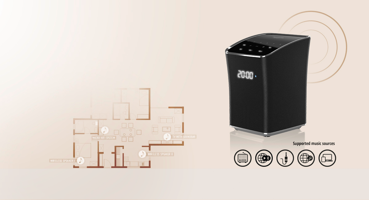Nästa generations ljudsystem för att streama din favoritmusik, radiokanaler och ljudfiler direkt från smartphone eller surfplatta.Tack vare enkla one-touch förinställningar, musikalarm och Bluetooth-stöd ansluter du enkelt alla ALL-enheter i systemet och streamar din favoritmusik i vilka rum du vill.