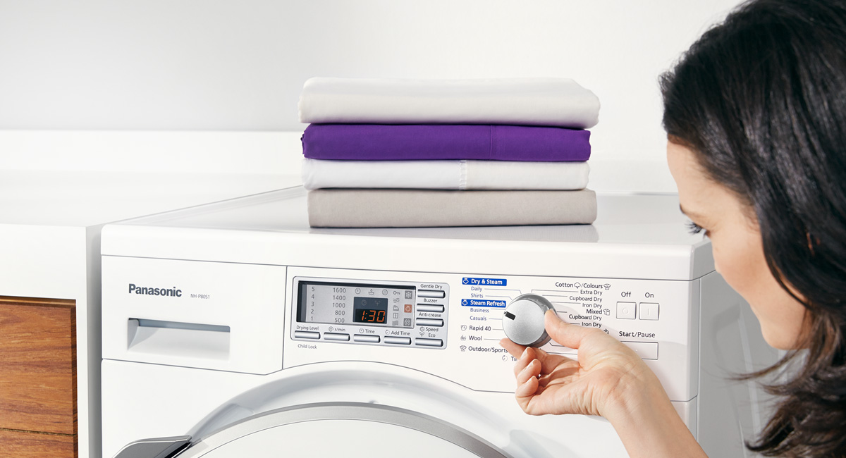 Hur kan du spara tid eller energi Om du väljer snabbläget torkas tvätten snabbare i högre temperatur, vilket ger dig mer tid att göra annat. Med snabbläget*¹ minskar torktiden betydligt, det tar endast 122 minuter*² att torka 8 kg kläder. Det miljövänliga läget körs längre än det normala programmet men ger en stor energibesparing.