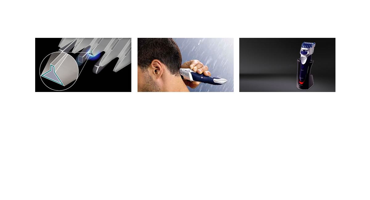 Om du trimmar håret samtidigt som du tvättar det, slipper du att hårstrån sprids överallt. När du har trimmat färdigt tvättar du bara bort hårstråna med schampo-skummet. Den vattentäta konstruktionen gör att du kan skölja av hela trimmern och hålla den ren. Du kan också skölja bladen fria från strån under rinnande vatten utan att ta loss dem.