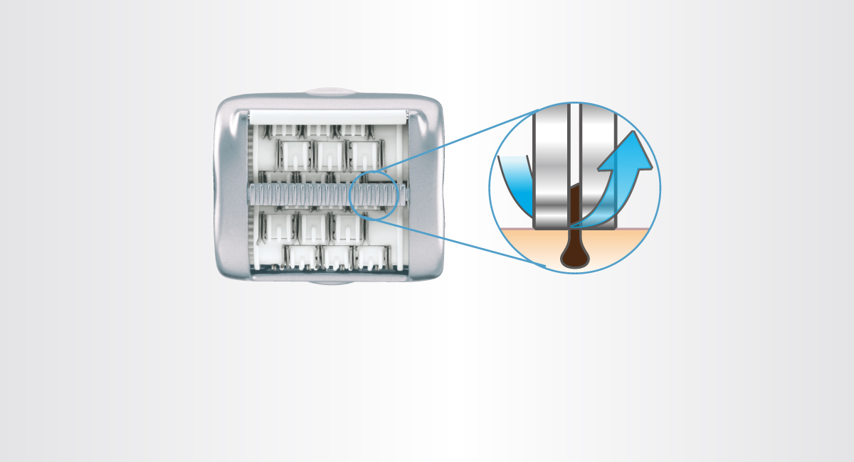Två roterande skivor fångar effektivt in hårstråna och gör att epileringen går undan. Skivorna ställer in sig perfekt för att fånga in även de kortaste stråna och dra ut dem med roten.