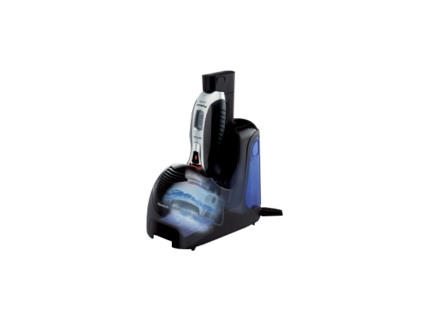 Modellen kommer med ett eget rengöringsställ som samtidigt fungerar som en elegant och platsbesparande laddningsstation. När du har rakat dig ställer du helt enkelt ner rakapparaten i sitt ställ där den rengörs, steriliseras, torkas och laddas tills det är dags för nästa rakning.
