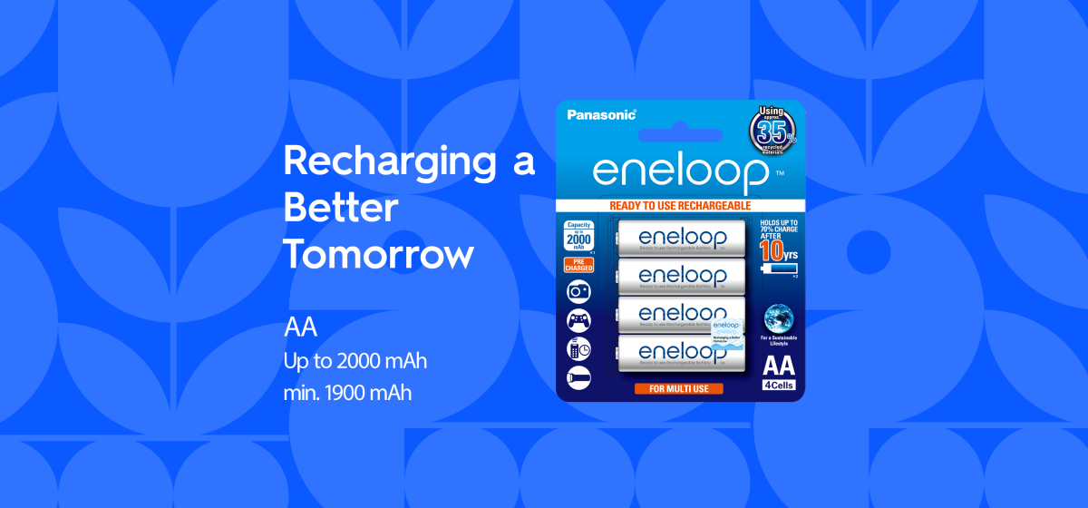 eneloop is made with recycled materials to support resource circulation, delivering the same high performance while reducing environmental impact